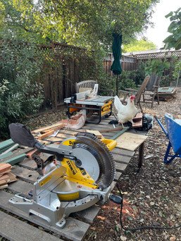 The whole project ended up much bigger than anticipated. It started by "let's replace the damaged pieces of wood by new ones" but we quickly realized that everything was rotten and that termites had been having a feast on it for the last few years. So we redid (and extended) the whole run, placed in on a base of pressure treated redwood beams. The hen house also ended up quite damaged, so we split the barn so the turkeys and the chickens could share it. It took us just a bit less than 3 months, but it was worth it.