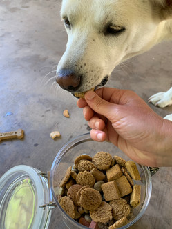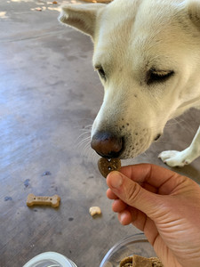Knowing that Skye was a picky eater, a friend brought a big jar with lots of different treats. At first she snubbed them all, but then she realized they weren't all the same so we did a treat tasting...